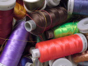 Gestickte Motive werden auf computergesteuerten Stick-automaten hergestellt.